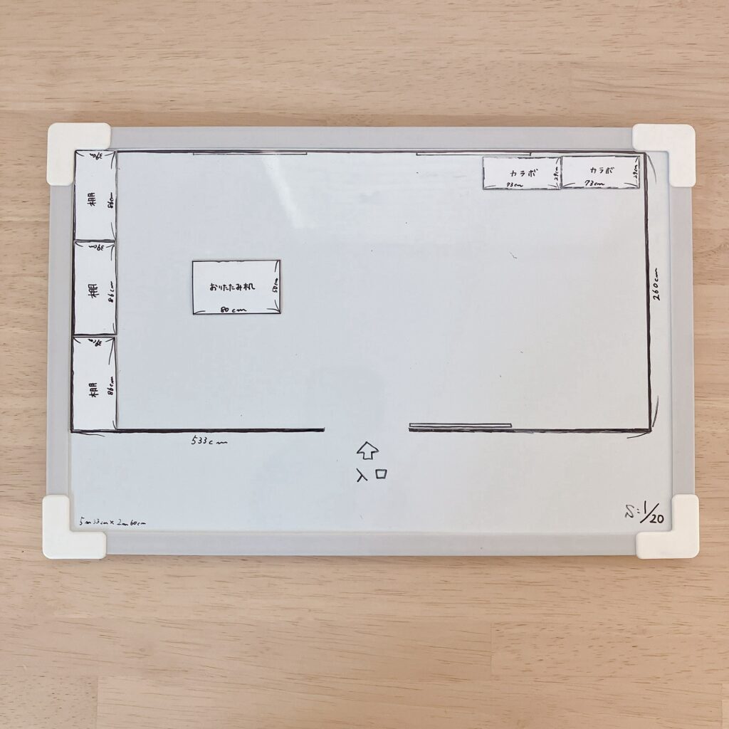 • 部屋を「運動スペース」と「お絵描き・ごっこ遊びスペース」に分ける