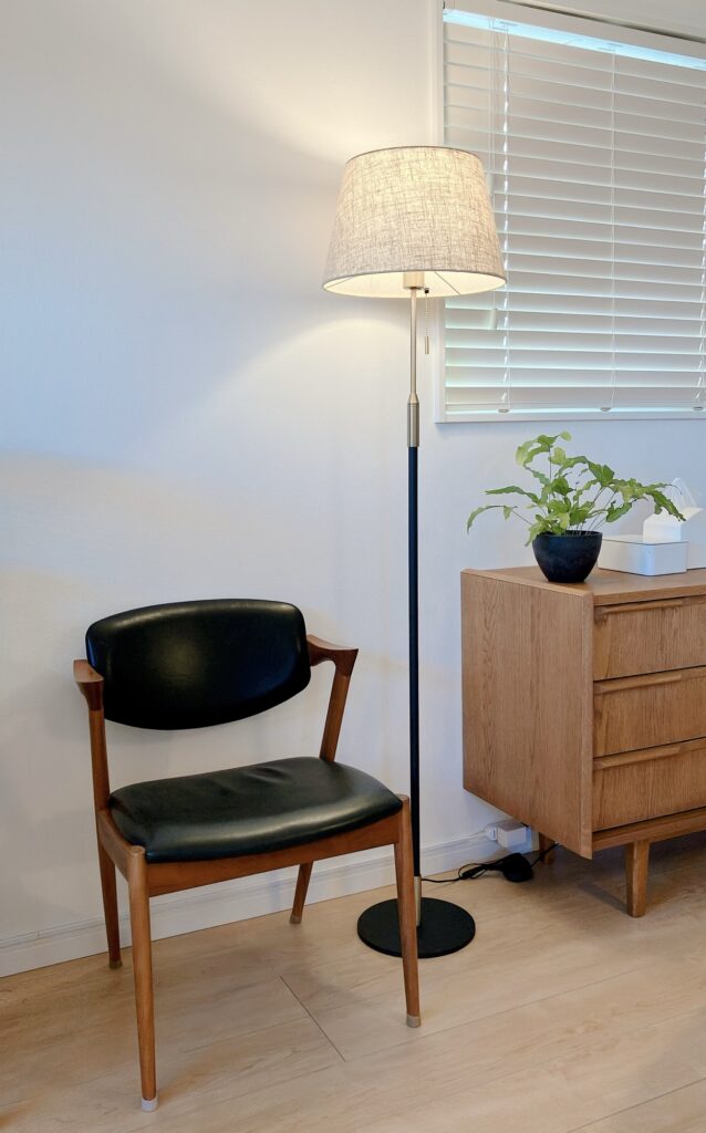 主張しすぎるライトはコーディネートが難しいため、できるだけ“空間に溶け込む”スタンドライトを探しました。白・黒・木目など、シンプルで長く使えるデザインが理想です。