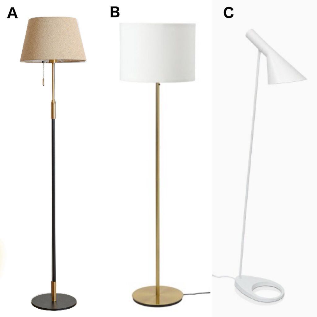 最終的に選んだのは 調光・調色ができる北欧風スタンドライト(A)。 実は最後までIKEAのスカフテート(B)と迷いました。
