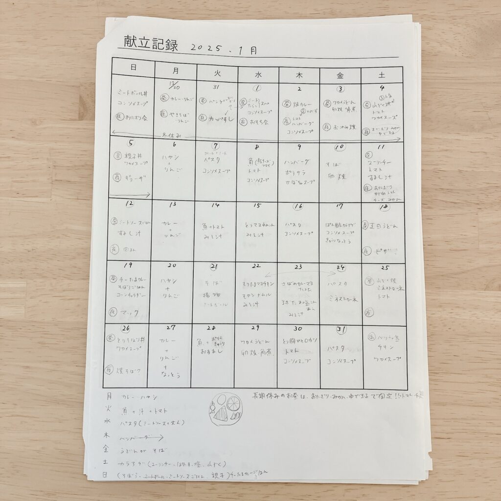 一週間の献立を立て、まとめ買い が基本。朝食はパン食中心でメニューがほぼ固定なので夕食だけ献立を立てています。献立を立てることは食品ロスを減らし食費を抑えるのに効果大でした。また、夫のお昼はお弁当持参です。